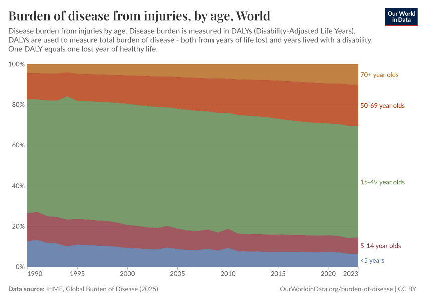 It’s important to note that this chart shows the relative share of DALYs from each category.