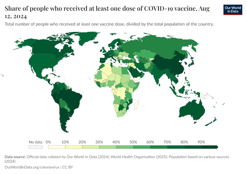 Edouard Mathieu, Hannah Ritchie, Lucas Rodés-Guirao, Cameron Appel, Daniel Gavrilov, Charlie Giattino, Joe Hasell, Bobbie Macdonald, Saloni Dattani, Diana Beltekian, Esteban Ortiz-Ospina, and Max Roser (2020) - “Coronavirus (COVID-19) Vaccinations” Published online at OurWorldinData.org. Retrieved from: 'https://style-labor-employmentrate-c.owid.pages.dev:8789/20260225-064125/covid-vaccinations.html' [Online Resource] (archived on February 25, 2026).BibTeX citation