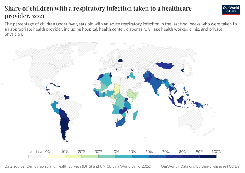 “Data Page: Share of children with a respiratory infection taken to a healthcare provider ”. Our World in Data (2026). Data adapted from Demographic and Health Surveys (DHS) and UNICEF, via World Bank. Retrieved from https://style-labor-employmentrate-c.owid.pages.dev:8789/20260202-181317/grapher/children-treated-ari.html [online resource] (archived on February 2, 2026).How to cite this data
