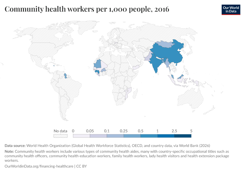 “Data Page: Community health workers per 1,000 people”. Our World in Data (2026). Data adapted from World Health Organization (Global Health Workforce Statistics), OECD, and country data, via World Bank. Retrieved from https://style-labor-employmentrate-c.owid.pages.dev:8789/20260202-181317/grapher/community-health-workers.html [online resource] (archived on February 2, 2026).How to cite this data