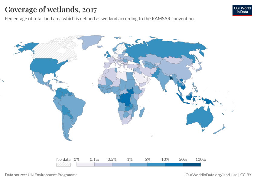 “Data Page: Coverage of wetlands”. Our World in Data (2026). Data adapted from UN Environment Programme. Retrieved from https://style-labor-employmentrate-c.owid.pages.dev:8789/20260130-180113/grapher/coverage-of-wetlands.html [online resource] (archived on January 30, 2026).How to cite this data