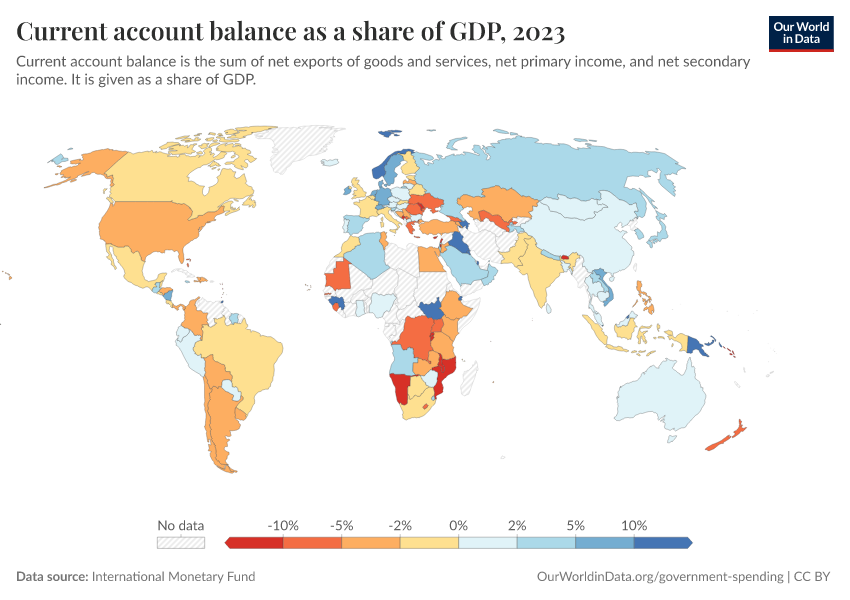 “Data Page: Current account balance as a share of GDP”. Our World in Data (2026). Data adapted from International Monetary Fund. Retrieved from https://style-labor-employmentrate-c.owid.pages.dev:8789/20251120-211749/grapher/current-account-balance-as-a-proportion-of-gdp.html [online resource] (archived on November 20, 2025).How to cite this data