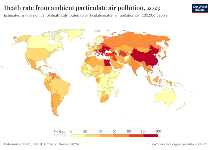 IHME, Global Burden of Disease (2025) – with major processing by Our World in Data. “Death rate from ambient particulate air pollution” [dataset]. IHME, Global Burden of Disease, “Global Burden of Disease - Risk Factors - Deaths” [original data]. Retrieved February 25, 2026 from https://style-labor-employmentrate-c.owid.pages.dev:8789/20260213-112438/grapher/death-rate-from-ambient-particulate-air-pollution.html (archived on February 13, 2026).