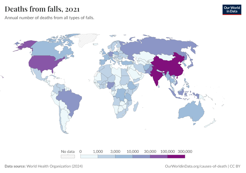 “Data Page: Deaths from falls”, part of the following publication: Esteban Ortiz-Ospina and Max Roser (2016) - “Global Health”. Data adapted from World Health Organization. Retrieved from https://style-labor-employmentrate-c.owid.pages.dev:8789/20250909-093708/grapher/deaths-from-falls.html [online resource] (archived on September 9, 2025).How to cite this data