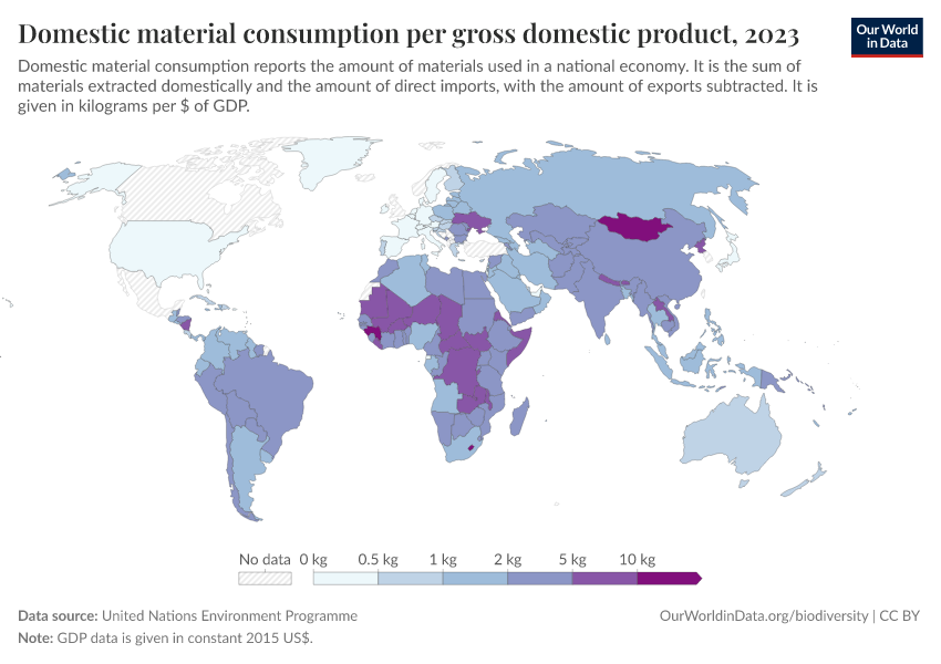 “Data Page: Domestic material consumption per gross domestic product”. Our World in Data (2026). Data adapted from United Nations Environment Programme. Retrieved from https://style-labor-employmentrate-c.owid.pages.dev:8789/20260130-180113/grapher/domestic-material-consumption-per-unit-of-gdp.html [online resource] (archived on January 30, 2026).How to cite this data