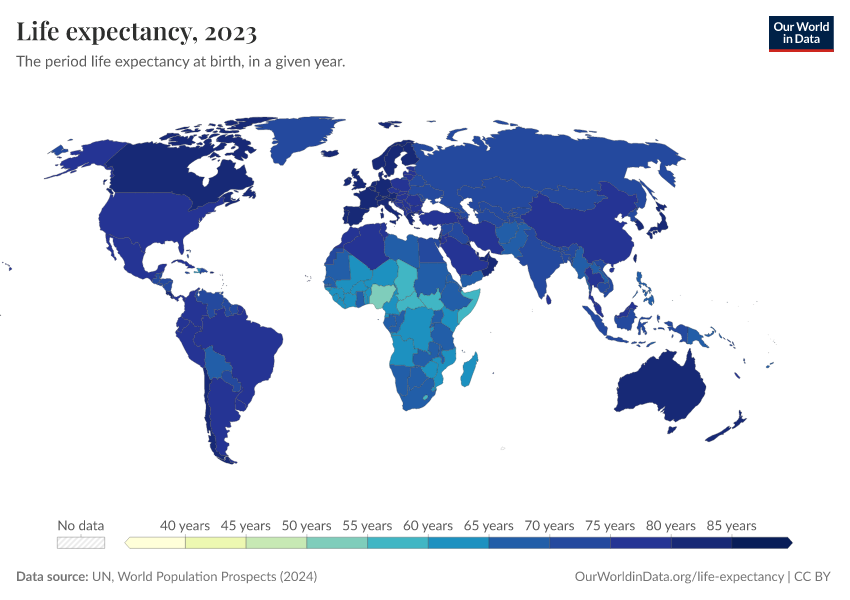 “Data Page: Life Expectancy, age 0”. Our World in Data (2026). Data adapted from United Nations. Retrieved from https://style-labor-employmentrate-c.owid.pages.dev:8789/20260225-004721/grapher/life-expectancy-unwpp.html [online resource] (archived on February 25, 2026).How to cite this data
