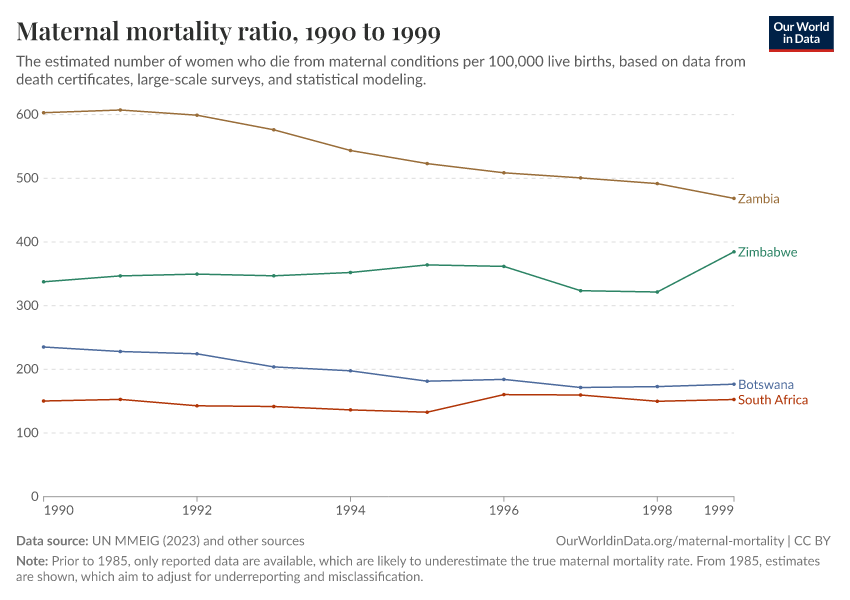 “Data Page: Maternal mortality ratio”, part of the following publication: Max Roser and Hannah Ritchie (2013) - “Maternal Mortality”. Data adapted from UN MMEIG (WHO, UNICEF, UNFPA, World Bank Group and UNDESA/ Population Division), WHO Mortality Database, United Nations, Gapminder. Retrieved from https://style-labor-employmentrate-c.owid.pages.dev:8789/20260119-065148/grapher/maternal-mortality.html [online resource] (archived on January 19, 2026).How to cite this data