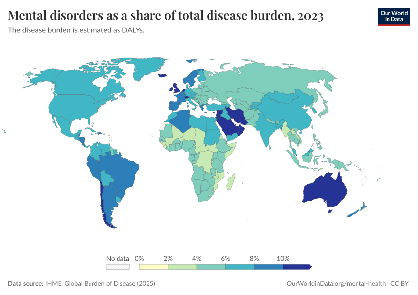 Mental disorders as a share of total disease burden