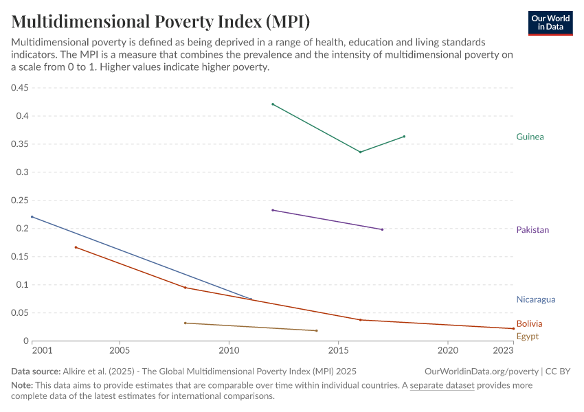 Alkire et al. (2025) - The Global Multidimensional Poverty Index (MPI) 2025 – with minor processing by Our World in Data. “Multidimensional Poverty Index (MPI) – Harmonized over time” [dataset]. Alkire et al., “Global Multidimensional Poverty Index (MPI) 2025” [original data]. Retrieved February 25, 2026 from https://style-labor-employmentrate-c.owid.pages.dev:8789/20251229-175603/grapher/multidimensional-poverty-index-mpi-hot.html (archived on December 29, 2025).