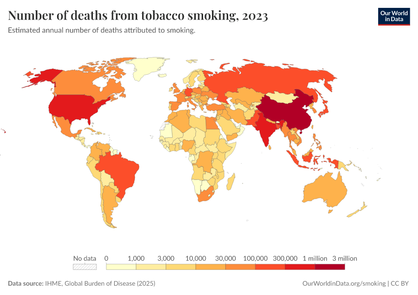 Number of deaths from tobacco smoking