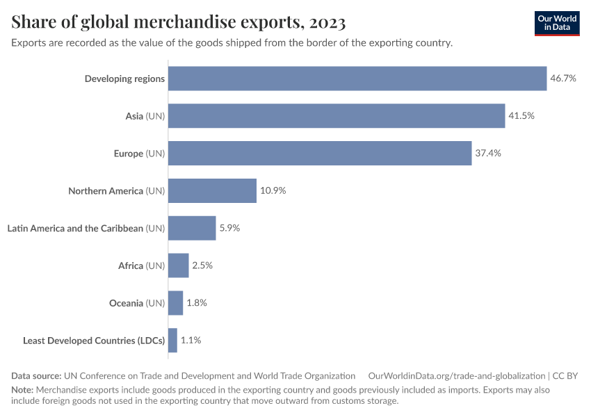 “Data Page: Share of global merchandise exports”. Our World in Data (2026). Data adapted from UN Conference on Trade and Development and World Trade Organization. Retrieved from https://style-labor-employmentrate-c.owid.pages.dev:8789/20260130-180113/grapher/share-of-global-merchandise-exports.html [online resource] (archived on January 30, 2026).How to cite this data