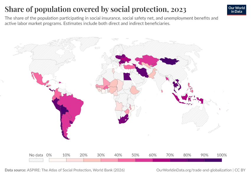 “Data Page: Share of population covered by social protection”. Our World in Data (2026). Data adapted from ASPIRE: The Atlas of Social Protection, World Bank. Retrieved from https://style-labor-employmentrate-c.owid.pages.dev:8789/20260202-181317/grapher/share-of-population-covered-by-social-protection.html [online resource] (archived on February 2, 2026).How to cite this data