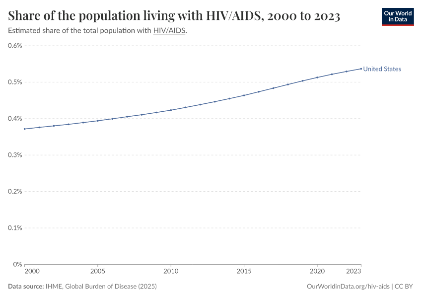 IHME, Global Burden of Disease (2025) – with major processing by Our World in Data. “Share of the population living with HIV/AIDS” [dataset]. IHME, Global Burden of Disease, “Global Burden of Disease - Prevalence and Incidence” [original data]. Retrieved February 25, 2026 from https://style-labor-employmentrate-c.owid.pages.dev:8789/20260212-172859/grapher/share-of-the-population-living-with-hivaids.html (archived on February 12, 2026).