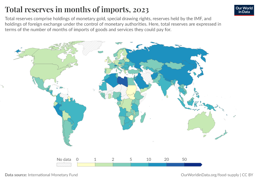 “Data Page: Total reserves in months of imports”. Our World in Data (2026). Data adapted from International Monetary Fund. Retrieved from https://style-labor-employmentrate-c.owid.pages.dev:8789/20260130-180113/grapher/total-reserves-in-months-of-imports.html [online resource] (archived on January 30, 2026).How to cite this data