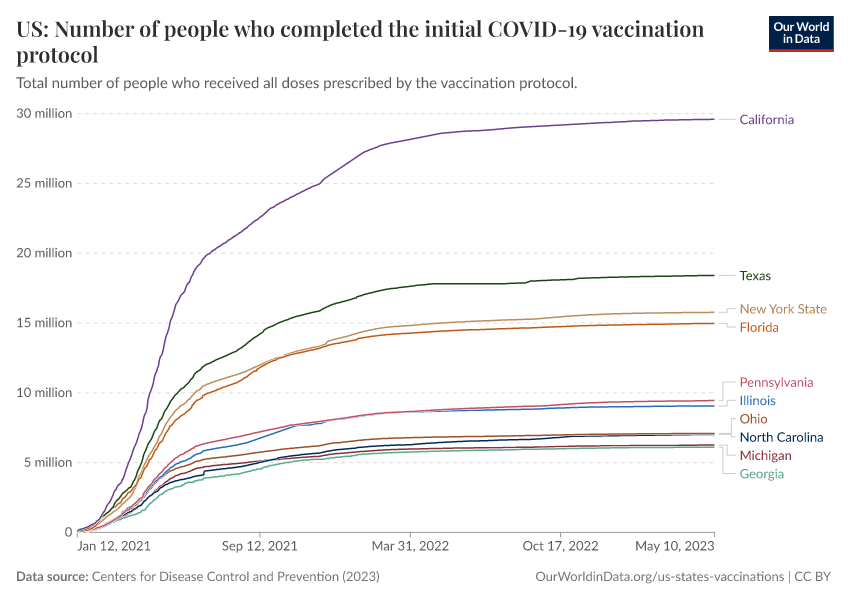 Centers for Disease Control and Prevention (2023) – processed by Our World in Data. “US: Number of people who completed the initial COVID-19 vaccination protocol” [dataset]. Centers for Disease Control and Prevention, “COVID-19, Vaccinations (United States)” [original data]. Retrieved February 25, 2026 from https://style-labor-employmentrate-c.owid.pages.dev:8789/20250909-093708/grapher/us-covid-number-fully-vaccinated.html (archived on September 9, 2025).