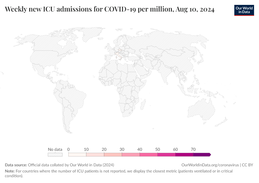 Official data collated by Our World in Data (2024) – processed by Our World in Data. “Weekly new ICU admissions for COVID-19 per million” [dataset]. Official data collated by Our World in Data, “COVID-19, hospitalisations” [original data]. Retrieved February 25, 2026 from https://style-labor-employmentrate-c.owid.pages.dev:8789/20250909-093708/grapher/weekly-icu-admissions-covid-per-million.html (archived on September 9, 2025).