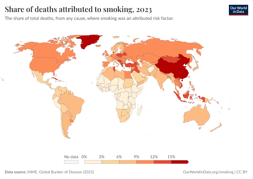In many countries, a high share of deaths is attributed to smoking