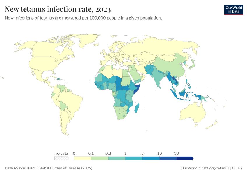 New tetanus cases by country