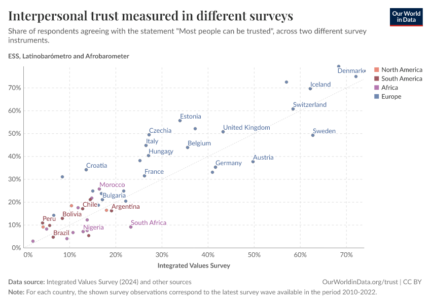 Esteban Ortiz-Ospina, Max Roser, and Pablo Arriagada (2016) - “Trust” Published online at OurWorldinData.org. Retrieved from: 'https://style-labor-employmentrate-c.owid.pages.dev/trust' [Online Resource]BibTeX citation