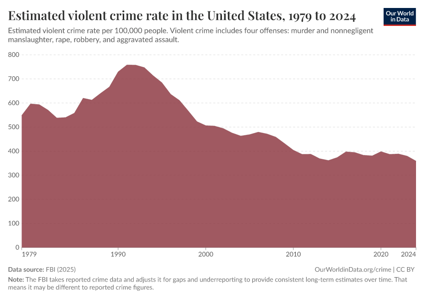 Hannah Ritchie and Fiona Spooner (2026) - “How have crime rates in the United States changed over the last 50 years?” Published online at OurWorldinData.org. Retrieved from: 'https://style-labor-employmentrate-c.owid.pages.dev:8789/20260119-000134/us-crime-rates.html' [Online Resource] (archived on January 19, 2026).BibTeX citation